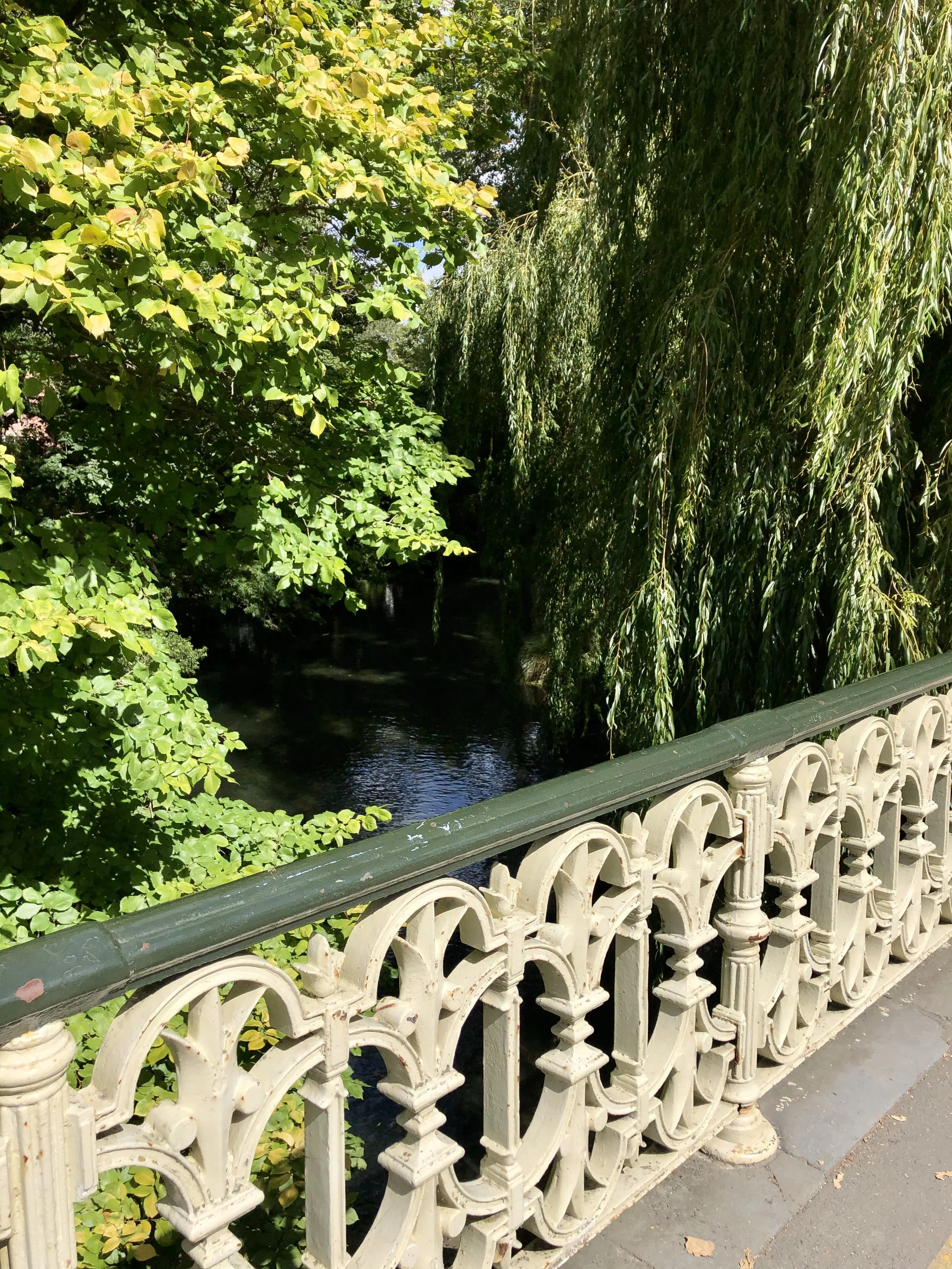Assess the Victorian-era setting of Hagley Park Bridge within Christchurch Botanic Gardens.